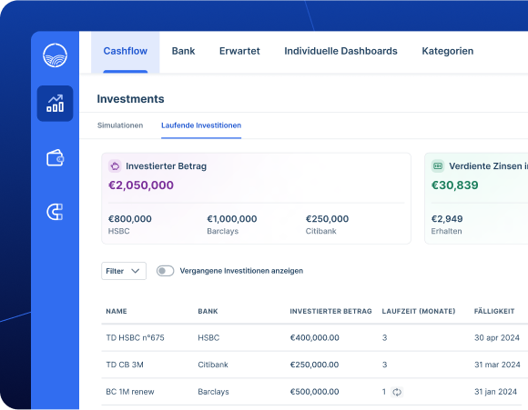 Investieren Sie überschüssige Liquidität in risikoarme, ertragsstarke Finanzinstrumente, um die Rendite zu maximieren. Monatliche Überprüfungen Ihrer kurzfristigen Anlagen und Neuprognosen können Ihr finanzielles Einkommen erheblich steigern. Insbesondere können monatliche Überprüfungen eine Ertragssteigerung von 10% bis 50% im Vergleich zu vierteljährlichen Überprüfungen erzielen und 2 bis 3 Mal mehr Einnahmen generieren als jährliche Überprüfungen.