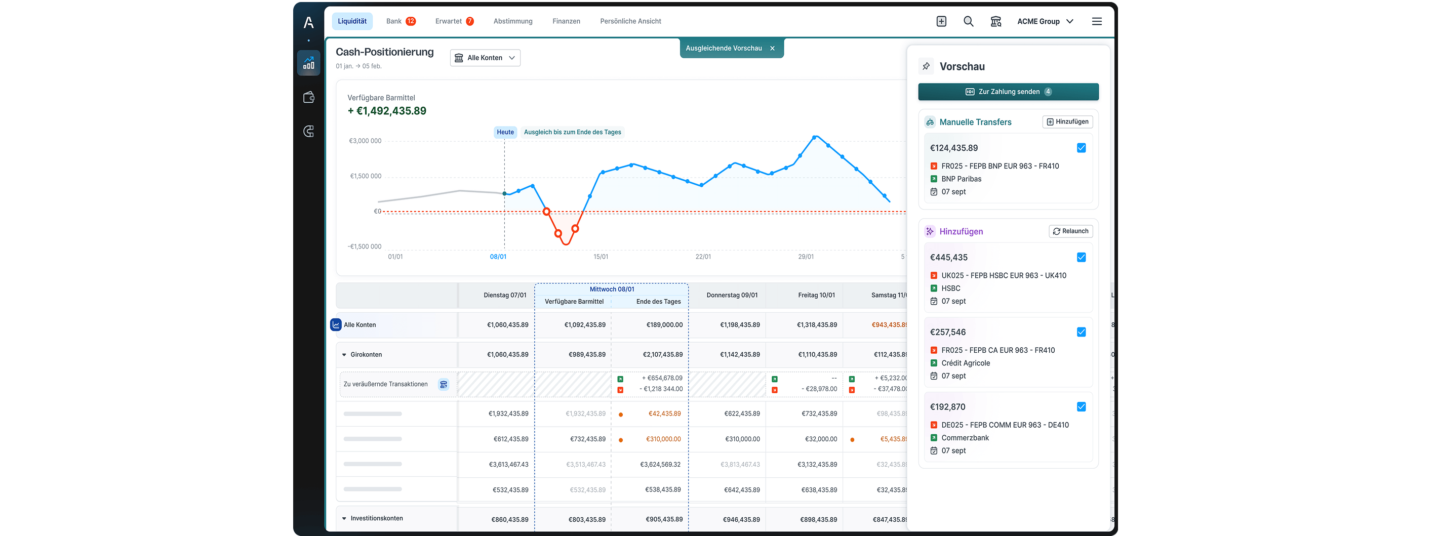 Prognosezuverlässigkeit & Reporting: Zur Stärkung des Vertrauens der Anteilseigner wurde eine verlässliche, rollierende Drei-Monats-Liquiditätsplanung eingeführt, ergänzt durch monatliche Abweichungsanalysen für einen detaillierten Blick des Investmentfonds auf die Finanzlage.