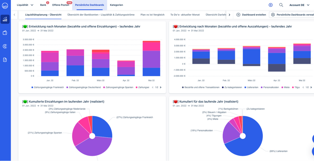 Mit Agicap können Sie sich einen eigenen, individuellen Finanzierungsplan erstellen, die die Liquiditätshistorie Ihres Geschäfts berücksichtigt. Die Historie dient Ihnen als Vorlage für einen neuen Finanzierungsplan, den Sie auch exportieren können.