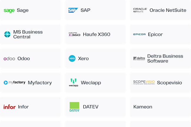 Agicap integriert alle Ihre Business-Tools und Daten bidirektional über API oder SFTP.