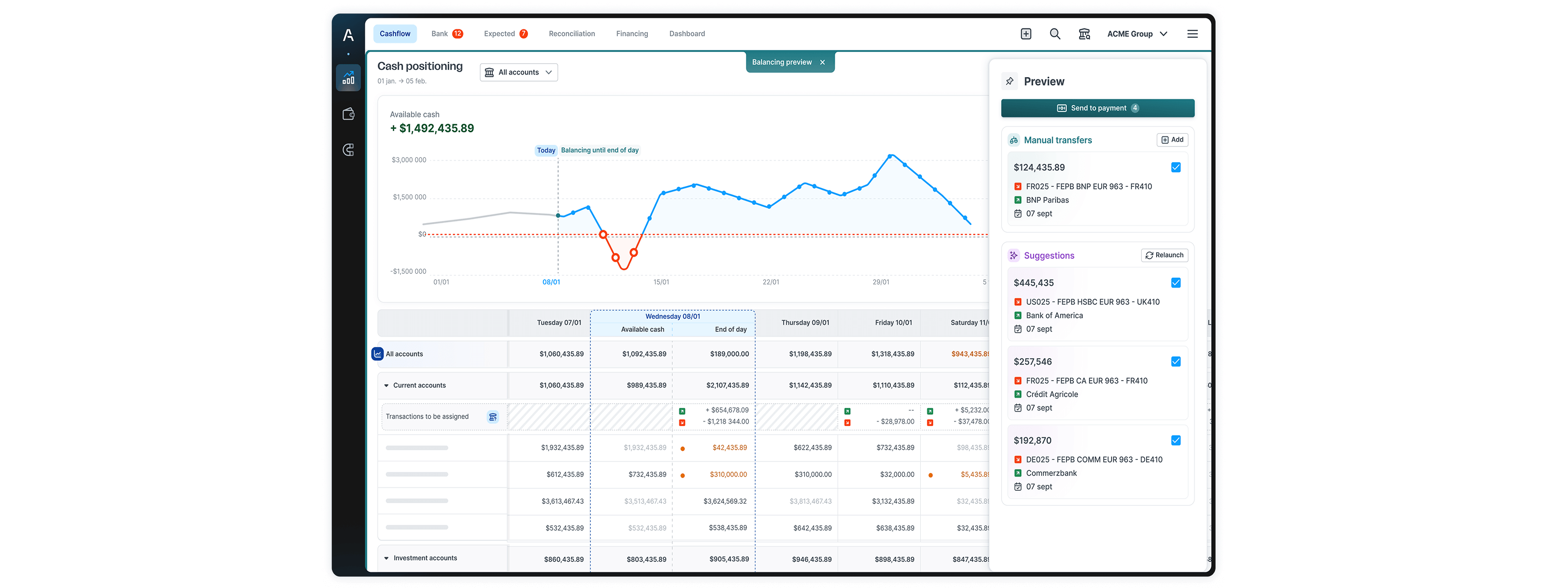 Connectivity & Centralization: Establishing a unified financial hub by connecting all banking partners via the EBICS TS protocol. This enabled real-time consolidation and customized dashboards across all nine entities for immediate group-wide visibility.