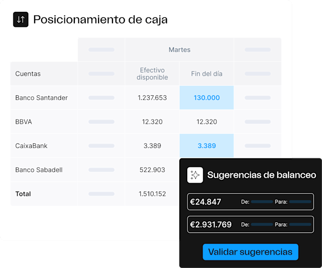 Obtén una visión consolidada actualizada y fiable de tus saldos bancarios y próximas transacciones por cuenta bancaria