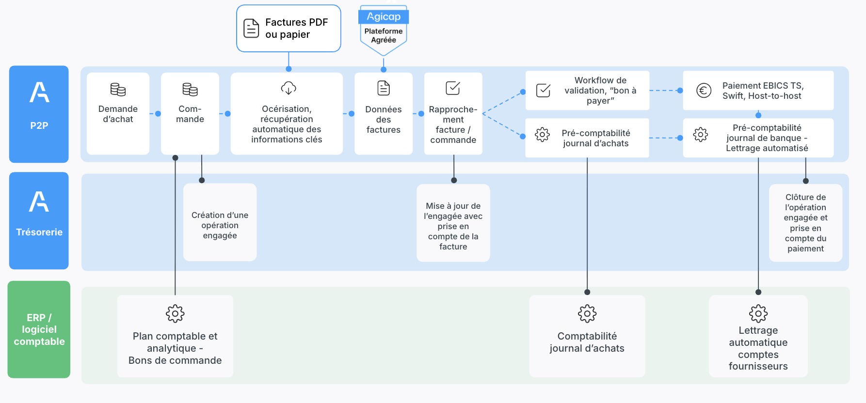 En s'équipant d'un acteur positionné comme Plateforme Agréée, une ETI ou une PME sécurise sa conformité l égale tout en optimisant ses opérations. La plateforme Agicap intègre nativement :
