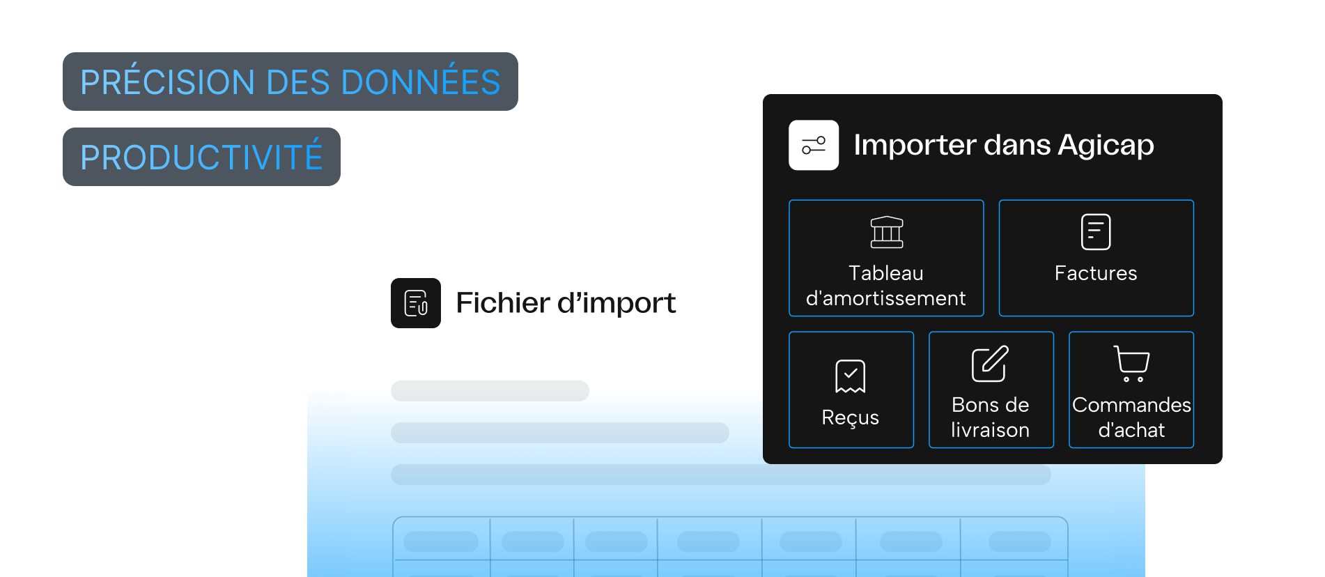 Automatisez la collecte de vos documents financiers. L’OCR d’Agicap analyse, contrôle et archive bons de commande, bons de livraison, factures, reçus et échéanciers de remboursement, garantissant des données fiables dès la première saisie.