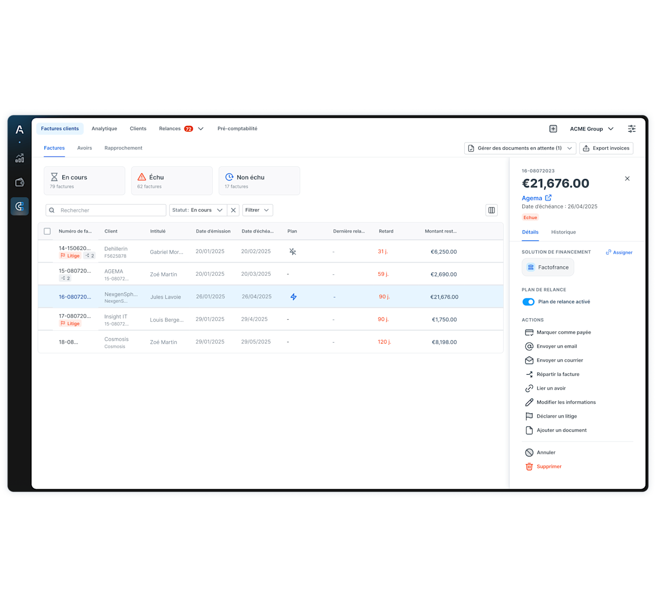Structurez votre processus de recouvrement à l'aide d'actions automatisées ou d'actions personnalisées suggérées.