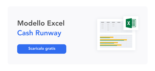 Mentre il burn rate ci mostra a che velocità viene speso il denaro, il cash runway si concentra sul tempo che rimane prima di ritrovarsi a corto di denaro.