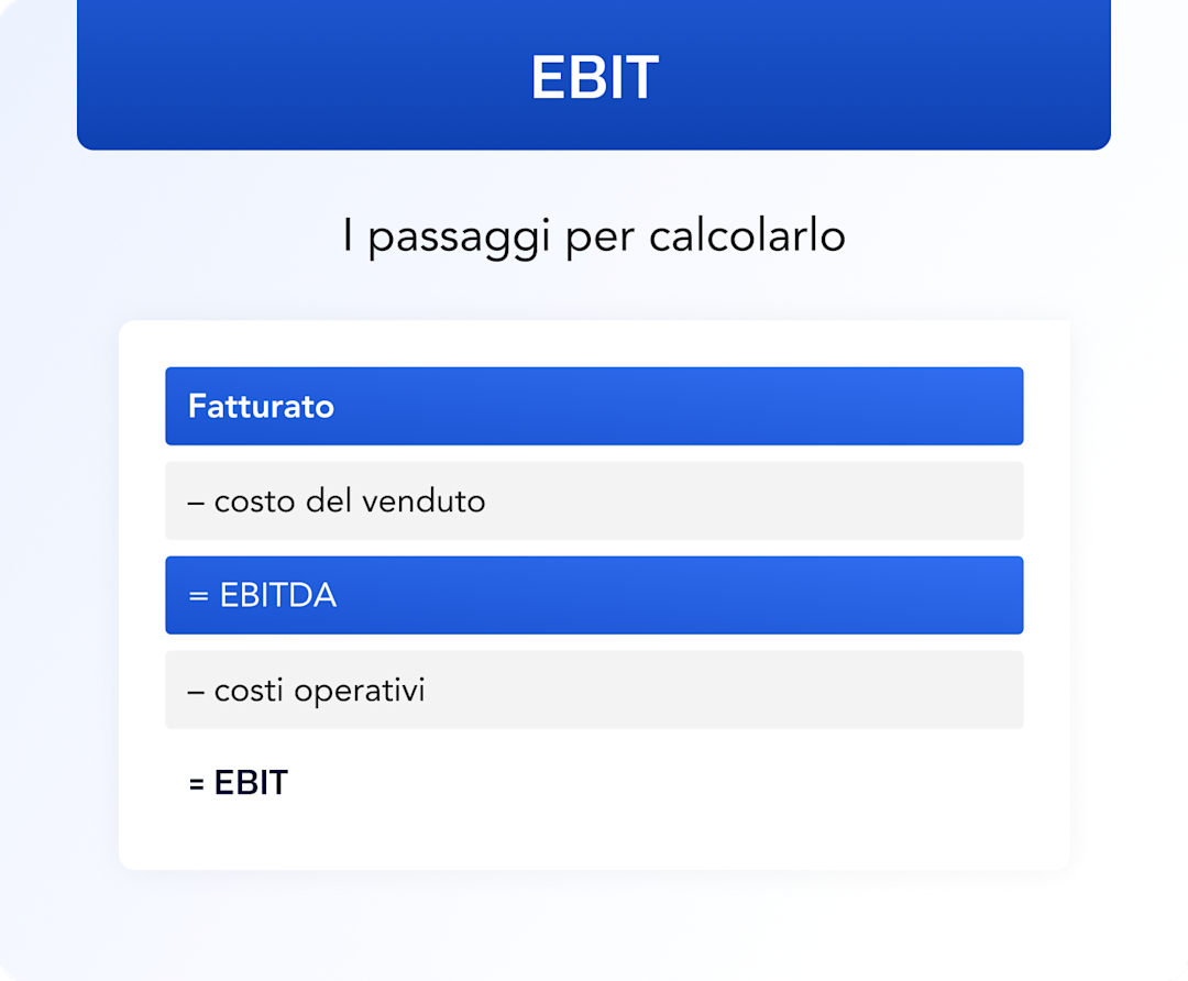 EBITDA - Costi operativi = EBIT (reddito operativo)