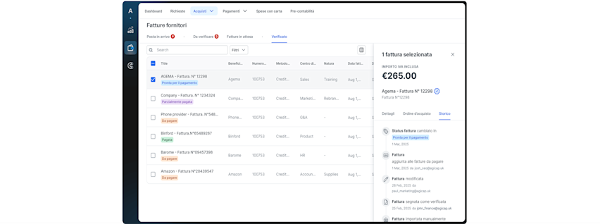 Maggiore sicurezza dei processi: workflow di approvazione sicuri — con segregazione dei compiti — insieme ad avvisi automatici in caso di modifica dell’IBAN hanno ridotto in modo significativo il rischio di frodi interne ed esterne.