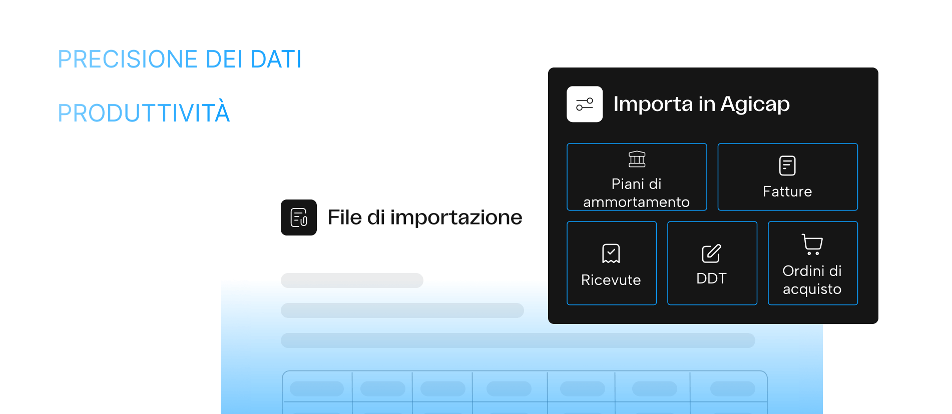 Automatizza la raccolta dei tuoi documenti finanziari. L’OCR di Agicap analizza, verifica e archivia ordini di acquisto, documenti di trasporto, fatture, ricevute e piani di ammortamento, garantendo dati affidabili fin dalla prima registrazione. Una base solida per mettere in sicurezza il tuo processo Procure-to-Pay.