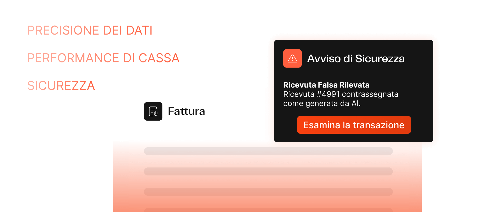Proteggi la tua liquidità dalle minacce attuali. La nostra AI rileva i giustificativi falsi generati da intelligenza artificiale e identifica i duplicati o le anomalie nei pagamenti prima che possano influenzare la tua posizione di cassa.