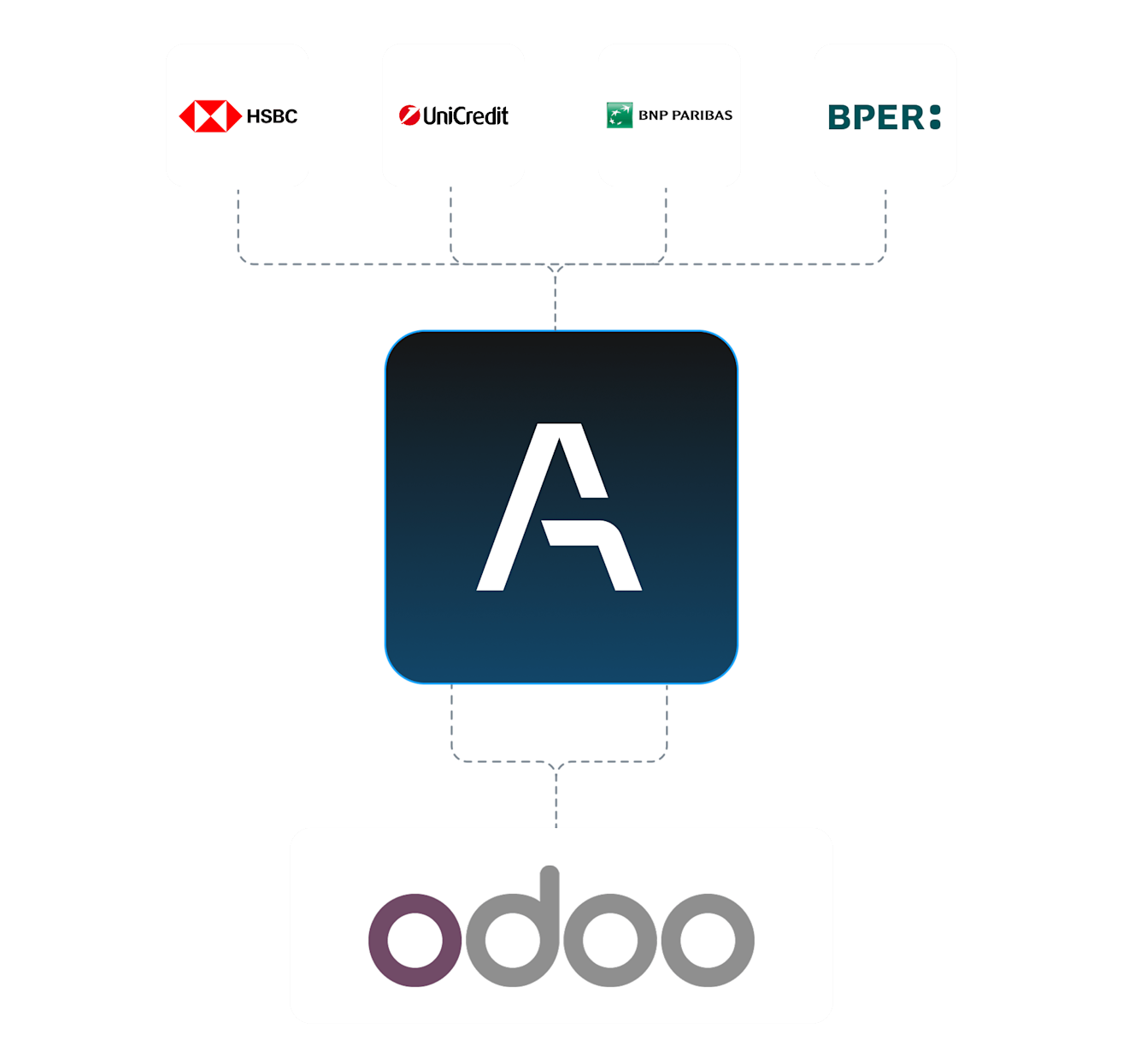 Integra i dati bancari, i conti fornitori e i conti clienti per una gestione fluida della liquidità tra Odoo e Agicap.