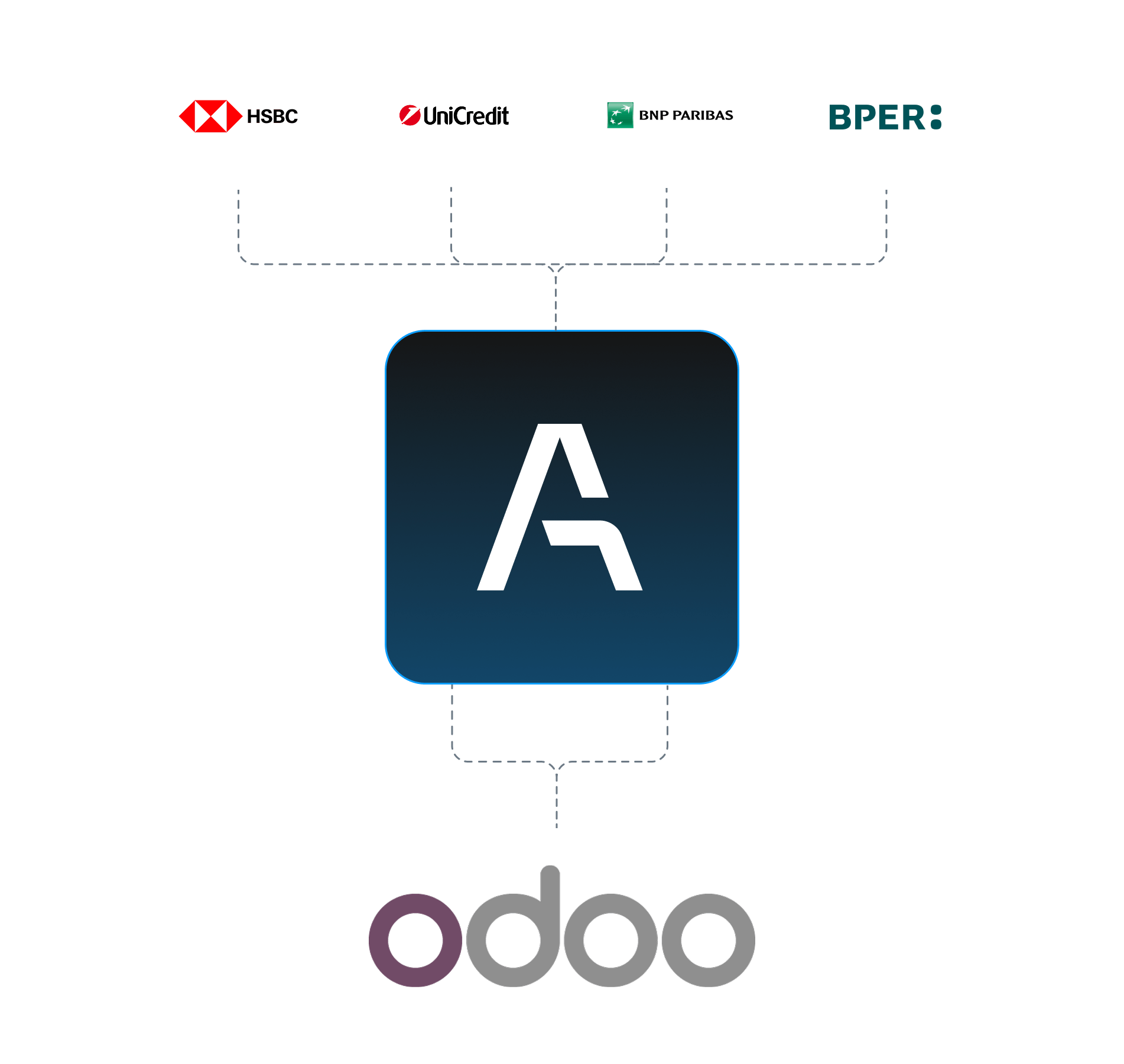 Integra i dati bancari, i conti fornitori e i conti clienti per una gestione fluida della liquidità tra Odoo e Agicap.