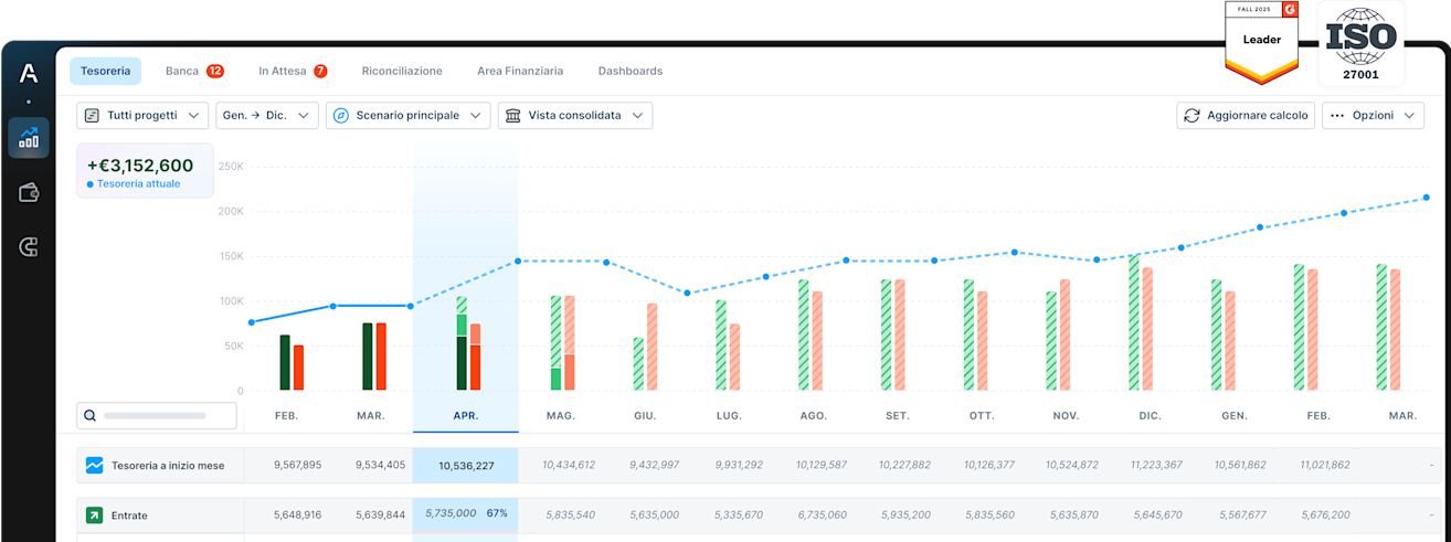 Tieni sempre sotto controllo la tua tesoreria. Prendi decisioni migliori basate su dati affidabili e in tempo reale. Migliora la visibilità e l’impatto sulla gestione di fornitori e clienti.